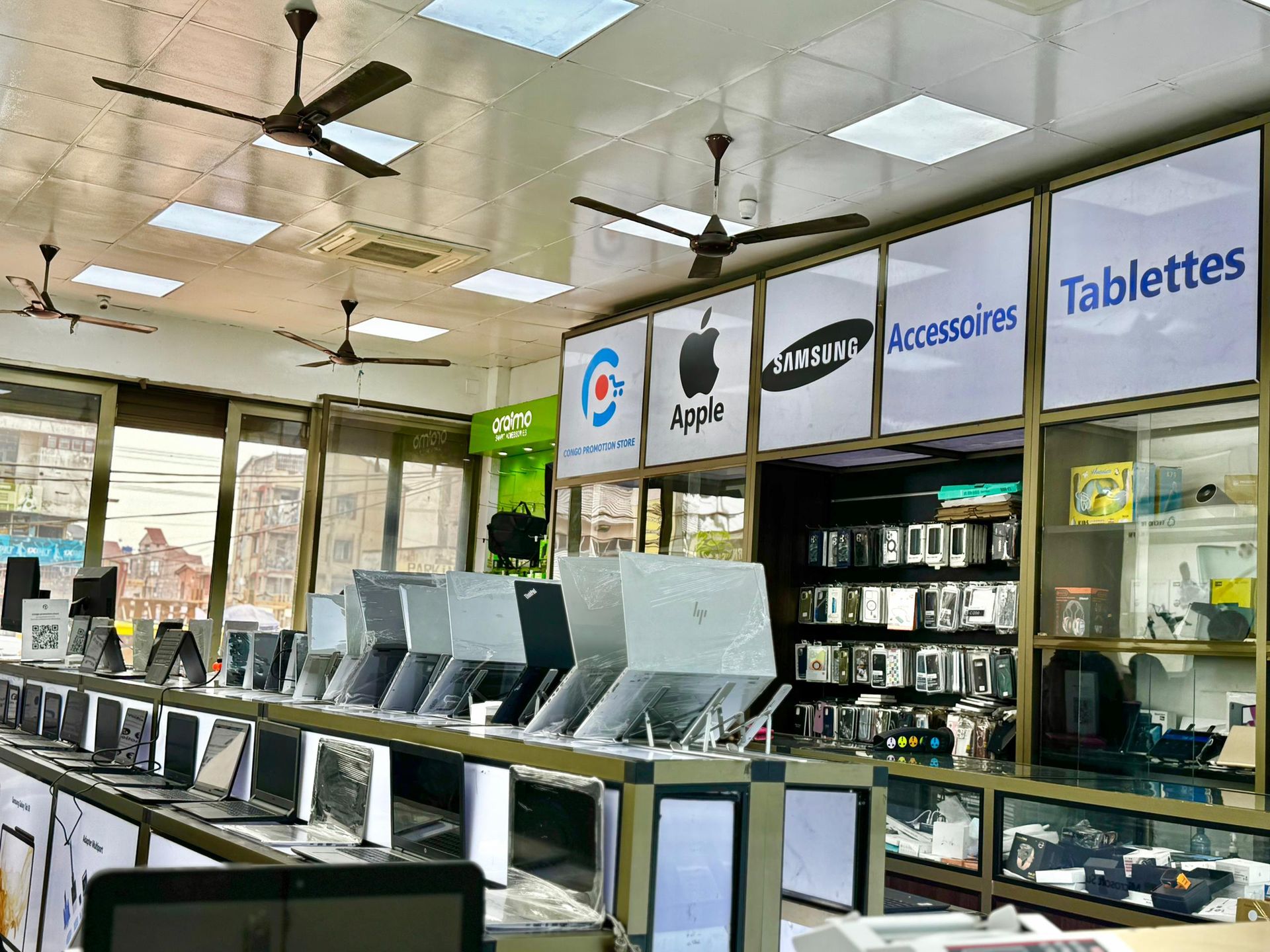 Bâtiment MERGE (shop avec panneau TECNO) ➡️ Baraka 165, commune de Kinshasa.